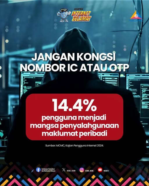 14.4% pengguna pernah menjadi mangsa penyalahgunaan maklumat peribadi!Jangan kongsi nombor IC atau OTP sesuka hati.